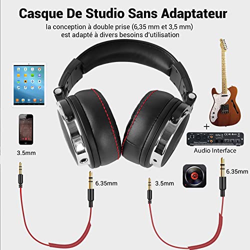 OneOdio Pro-50 Casque Audio Filaire DJ Studio Monitor avec Circum-Auriculaire Coton d’oreille Protéiné Le Plus épais, Hi-Res Audio, Share-Port, 2 Jacks, heaphone pour Phone PC Piano Guitare AMP Mix