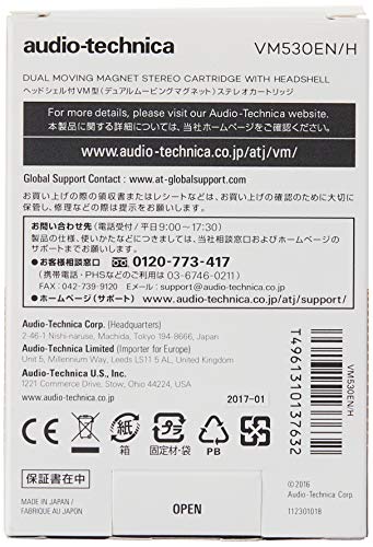 The VM530EN/H combo kit includes the VM530EN elliptical nude dual moving magnet cartridge premounted on the AT-HS10BK universal 1/2″-mount headshell. The VM530EN is a top-end elliptical stylus cartridge in Audio-Technica’s new VM cartridge line – a line that harks back to A-T’s early days as a manufacturer primarily of high-end phono cartridges, while also incorporating today’s advanced technology. Like all VM cartridges, the VM530EN is equipped with dual magnets that are positioned to match the left and right channels in the stereo record groove for outstanding channel separation and extended frequency response. The cartridge’s lightweight 0.3 x 0.7 mil elliptical nude stylus reduces the execution mass of the vibration system, enabling fuller frequency reproduction and less tracking distortion than a bonded stylus. Includes mounting hardware.