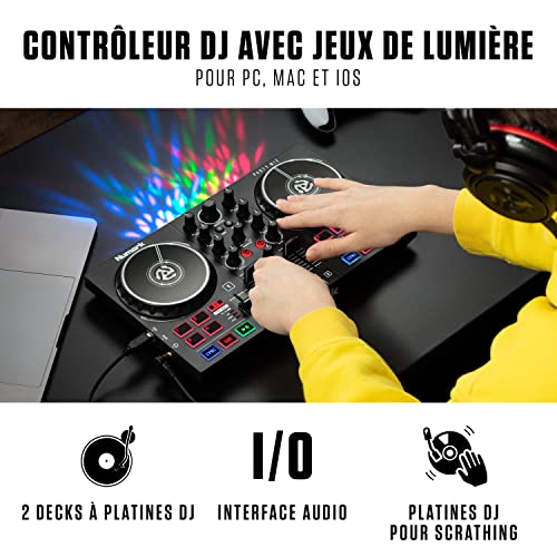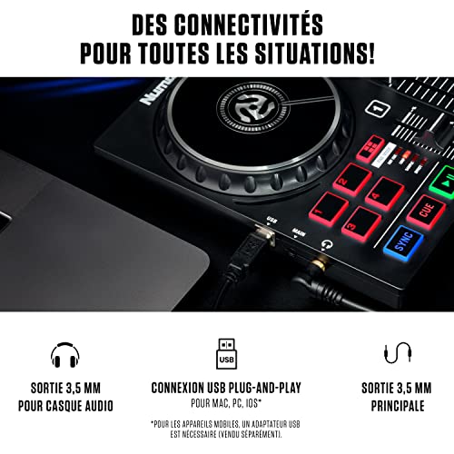 🇫🇷 Système Algoriddim djay et Serato DJ complet – Équipement USB pour DJ débutants avec 2 decks, interface audio intégrée et connexion USB Plug-and-Play pour PC, Mac, iOS