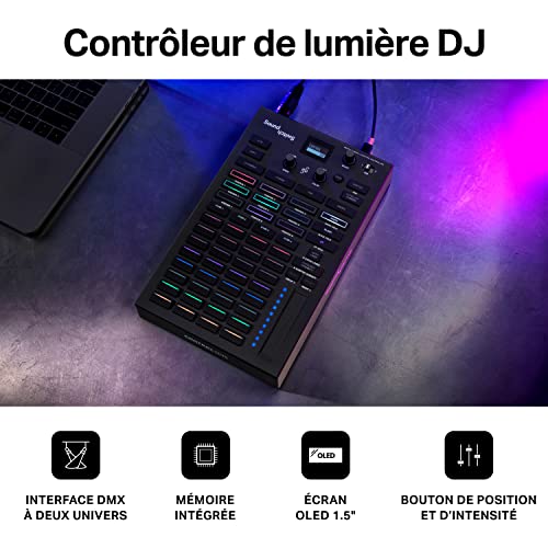 Contrôle tactile réactif – Bande tactile précise pour l’intensité des jeux et des groupes de lumière, potentiomètres graduels pour un réglage précis des paramètres, et pads RGB personnalisables