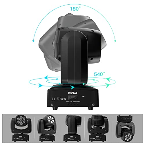 【Modes de contrôle multiples】DMX512, automatique, activé par la musique, maître-esclave, s’adapte aux besoins de différents endroits. Le mouvement de la tête permet un mouvement de rotation ou d’inclinaison à grand angle. Direction du faisceau facile à changer : rotation de 255° et inclinaison de 255°, 25 fois/sec. Flash aléatoire.