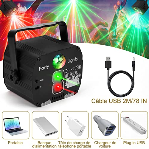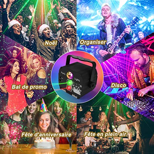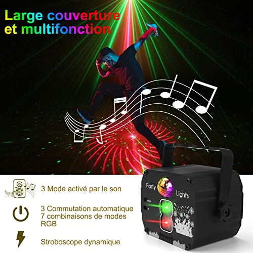 【Effets visuels sympa】Le meilleur choix pour les bals de fin d’année – Party Light, 60 modes de combinaison différents au total, projetant une image plus claire, contrairement à la lumière de fête normale. 7 fonds de couleurs (rouge,vert,bleu,rouge & vert, rouge & bleu, bleu & vert, rouge & vert & bleu) et 2 combinaisons de couleurs (mode flash + mode image fixe) pour un maximum d’ambiance de fête. Petite taille, Portable et léger, mais assez pour créer un excellent espace d’éclairage de scène.