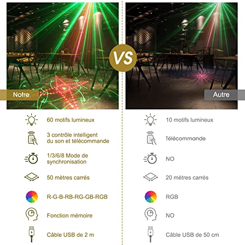 Specification: Disco Lumière, Télécommande sans Fil, Rotative à 360 ° et Câble USB, LED à Commande Vocale, 60 Modes Lampe de Scène pour les Fêtes d’Halloween, Noël, Club, Bar, DJ, Soirée, Home Karaoké.