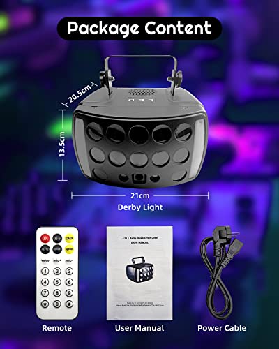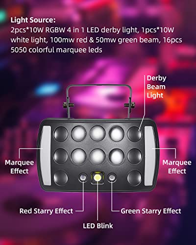 【Lumière Derby 4 en 1 Disco Light】La dernière lumière de fête a 2 bandes lumineuses de chapiteau, 2 lumières à effet étoilé rouge et vert, 12 lumières LED et 1 lumière blanche LED. Avec différents modes de travail et effets d’éclairage, la lumière DJ multifonctionnelle peut créer une atmosphère de scène impressionnante pour vous !