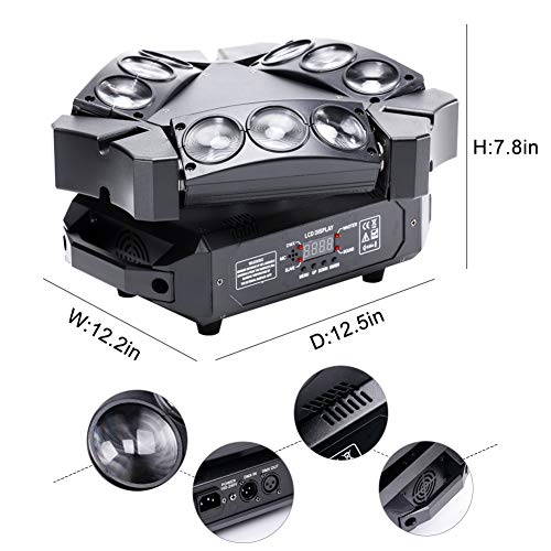 【4 modes】La lumière à 9 têtes d’oiseau dispose de 4 modes de contrôle : DMX, Master-Slave, contrôle audio et mode automatique. Il est recommandé d’utiliser plusieurs phares mobiles en même temps. L’effet est meilleur. Choisissez votre mode de fonctionnement préféré et effectuez facilement des activités professionnelles intéressantes.