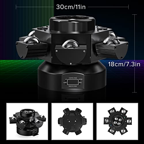 Specification: UKing Projecteur à tête mobile, projecteur de fête LED RGBW coloré DMX512 effet de lumière 6 bras activé par le son pour Noël DJ Bar Halloween anniversaire boîte de nuit mariage