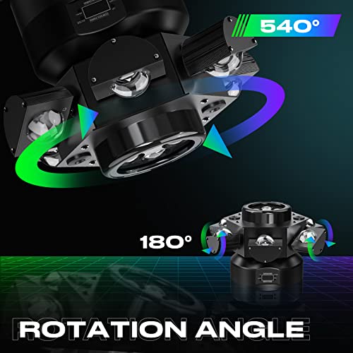 【Perles de lampe d’excellente qualité】 Cette lampe frontale mobile est composée de perles de lampe 10 * 10W de la meilleure qualité. 4 * perles de lampe telles que des yeux d’abeille sont situées sur le plateau tournant en œil d’abeille au centre, et 6 perles de lampe super lumineuses sont situées respectivement sur les 6 bras de lampe. Le plateau tournant en œil d’abeille et le bras d’éclairage peuvent être tournés à l’infini (horizontal 540 °, vertical 180 °).