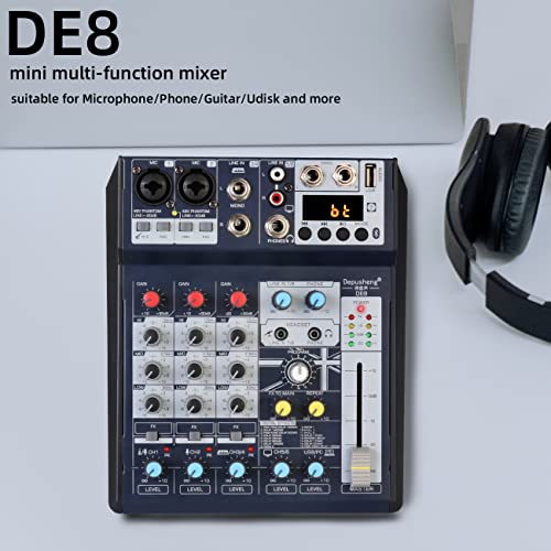 Depusheng DE8 Mini table de mixage audio portable avec carte son USB Alimentation fantôme 48 V pour enregistrement sur PC