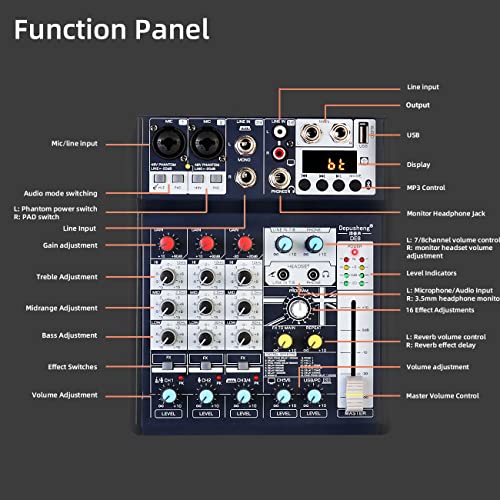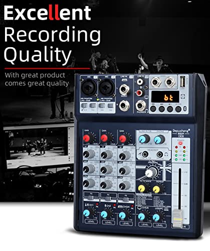 Specification: Depusheng DE8 Mini console DJ audio portable avec carte son USB, alimentation fantôme 48 V pour enregistrement PC