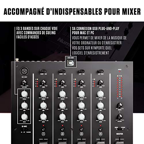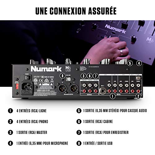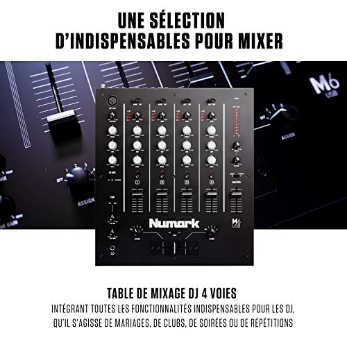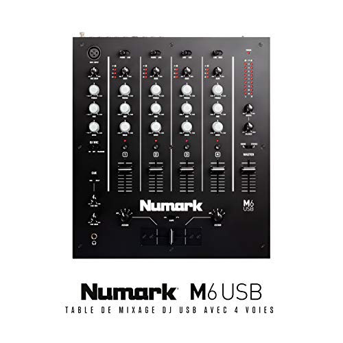 Numark M6 USB – Table de Mixage DJ 4 Voies pour Platine DJ avec Interface Audio / Carte son Intégrée, EQ 3 Bandes, Entrées pour Micro et RCA